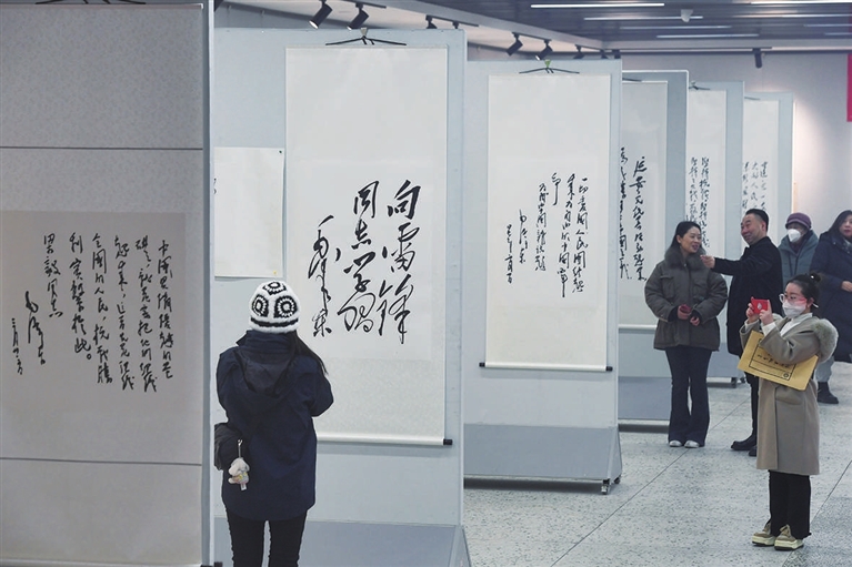 12月26日,红色作品书画展在山西神墨美术馆开展。100余幅书法作品回顾了党的光辉历史,传承红色基因。