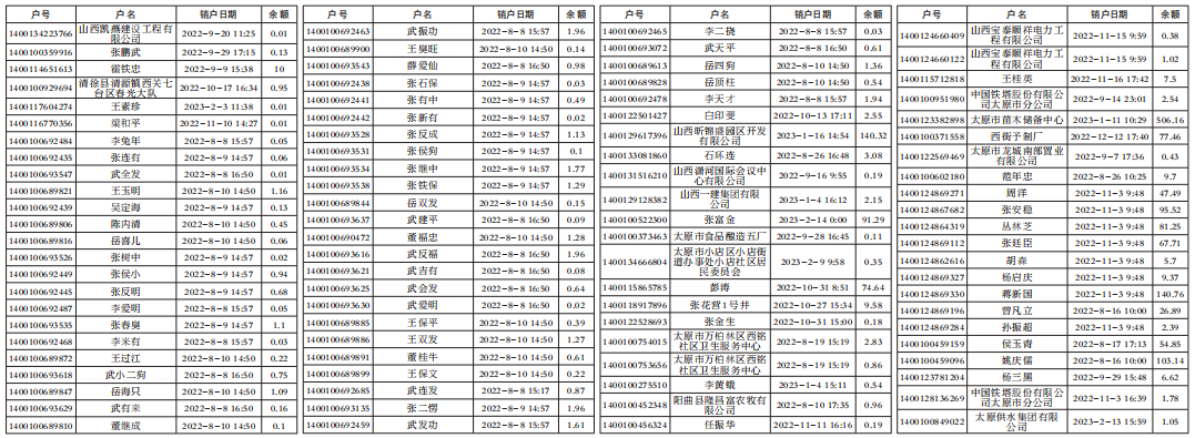 国网太原供电公司关于已办理销户未办理退费客户的公告