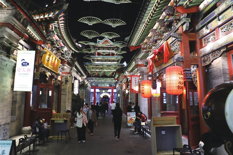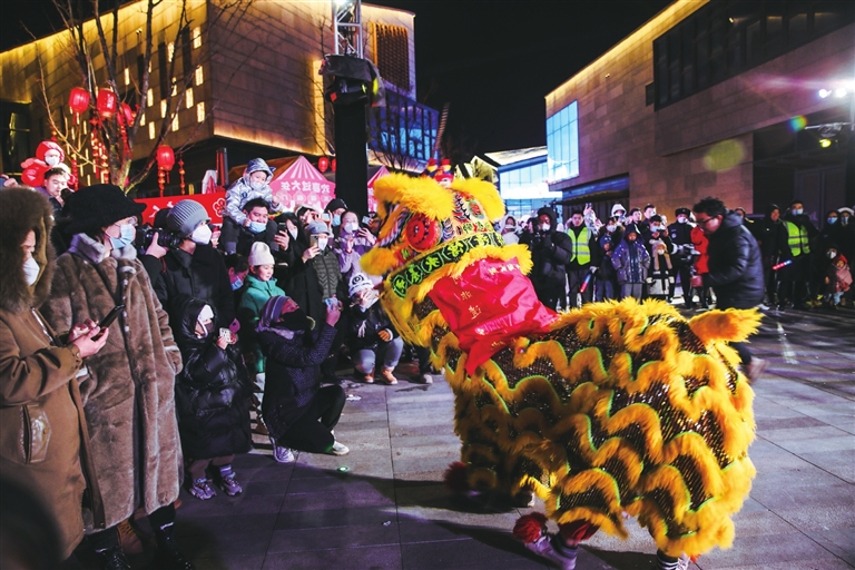 漫步老街,民俗文创、文化演出、灯光秀……活动丰富多彩,带给游人们一场又一场传统文化和现代元素激情碰撞的视觉盛宴。“热热闹闹真好,期待着新一年会更好!”60岁的白阿姨和老伴开心地逛着钟楼街。