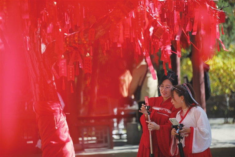 不远处,开化寺牌楼前,只见4位年轻人用手比划出“2024”,齐声祝福:“新年快乐!”另一位小伙伴手持相机,咔嚓咔嚓,用镜头记录这一美好时刻。
