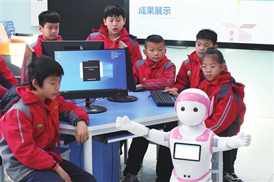 1月8日,小店街道警民小学的学生正在课后社团学习机器人编程。该校根据学生兴趣爱好,开展了形式多样的社团活动,鼓励学生多元化发展。邓寅明 摄