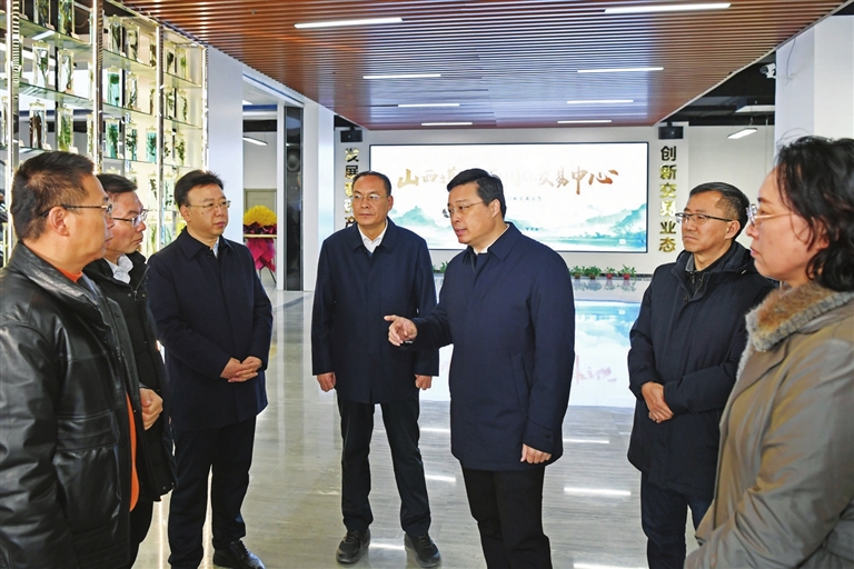 山西道地草药国际交易中心是集现货交易、仓储物流、支付结算、区块链溯源等功能于一体的全国性中药材线上交易平台。韦韬来到这里,详细了解平台交易流程、服务职能、运营体系等,结合大屏听取数字晋药平台建设、中药材市场交易情况介绍,走进展示大厅实地察看晋药品种和中药材产品。他勉励企业依托山西中药材资源优势和产业基础,发挥平台功能,做大交易规模,做强出口贸易,拓展销售市场,加快形成中药材培育种植、生产加工、销售推广的全产业链发展态势。