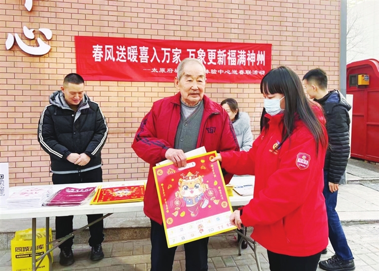 活动中,社区工作人员将“福”字送到居民手中,给路人拍照留念。接过礼品,居民们露出开心的笑容,连声向工作人员表达感谢。一幅幅满载暖意和祝愿的“福”字,一本本承载新年希望的台历,不仅弘扬了中华优秀传统文化,还营造出喜庆祥和的春节气氛,更架起了社区和居民之间的连心桥,让居民感受到来自社区的温暖和关爱,拉近了社区与居民的距离。