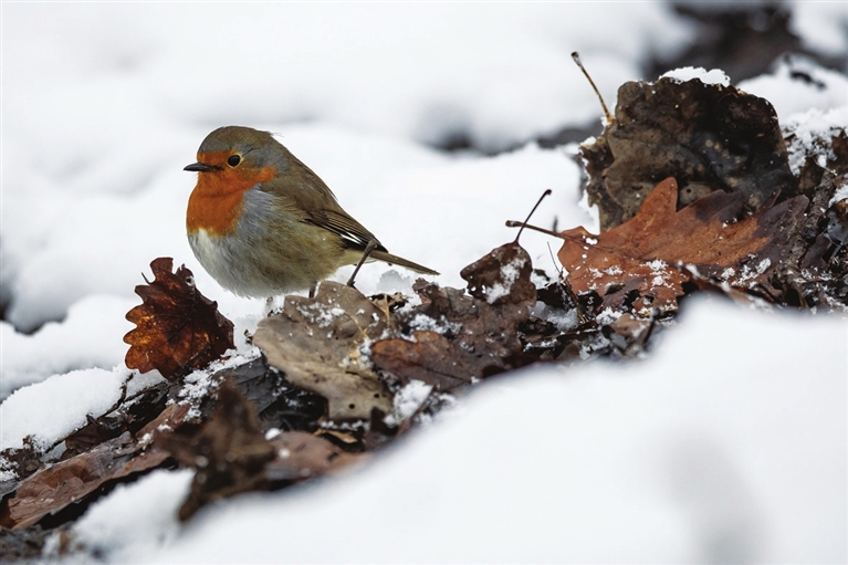 这是1月9日在法国巴黎近郊的朗布依埃森林公园里拍摄的小鸟。一股强冷空气8日起袭击法国,多个省份发布寒流预警,包括巴黎在内的多个城市出现降雪天气。