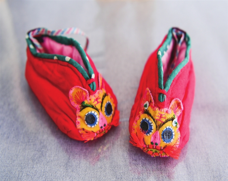 工作室内,一双小巧精致的“三寸金莲绣鞋”,让人移不开眼。这是王美萱姥姥的手艺,也是王美萱刺绣的启蒙。受家里老人们的影响,王美萱自幼喜欢绘画和女红,20多岁时,开始四处走访拜师,并结合家传技艺,逐渐形成了自己的风格。