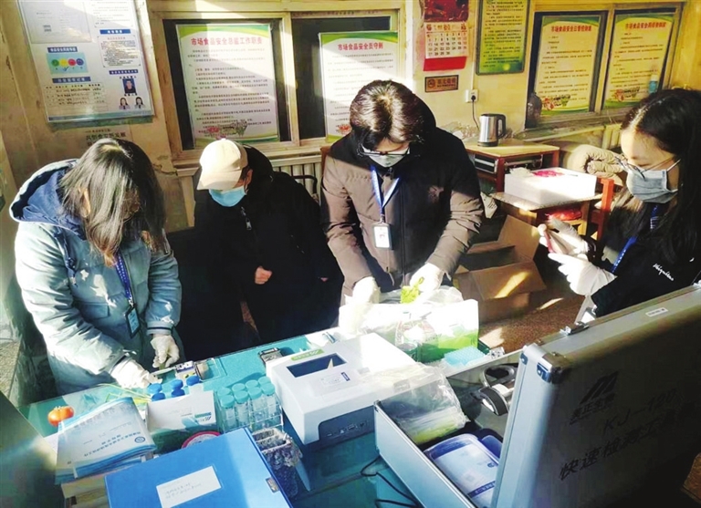 检测过程中,该中心负责人就规范检测操作、检测注意事项等进行讲解示范,并提出严格要求。同时,该中心工作人员严格按照食品快速检测抽样流程,使用胶体金法和分光光度法进行现场检测。此次,共检测蔬菜农药残留42批次,所抽样品全部符合国家标准。