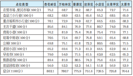 六城区创卫月督查暗访点位类型得分排名