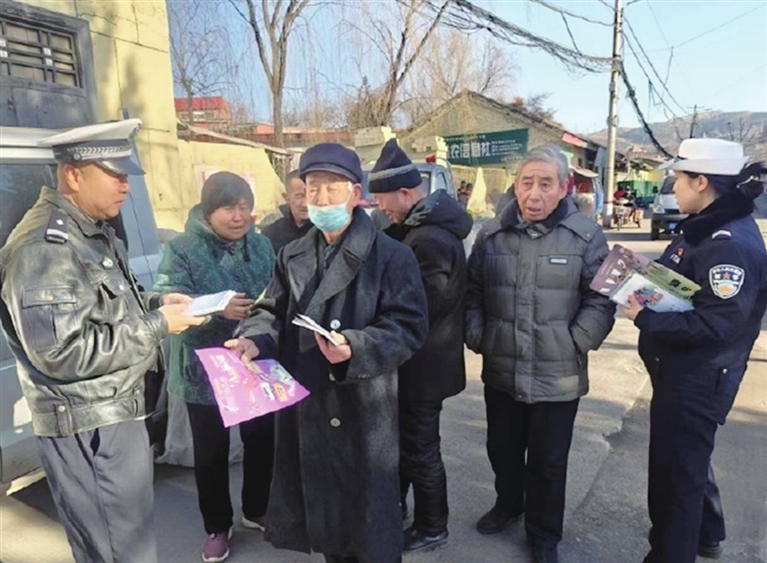 活动中,民警通过拉家常、农村大喇叭、张贴宣传海报、发放宣传资料、宣传品、面对面讲解等形式,用通俗易懂的语言向村民宣传交通安全知识,重点讲解了三轮车违法载人、骑乘摩托车电动车不戴安全头盔、酒驾醉驾等交通违法行为的危害,并结合典型事故案例,以案说法,提醒教育广大村民要遵守交通法规,拒绝乘坐超员车、载货车、无牌无证机动车等车辆出行。同时,叮嘱家长看管好孩子,教育孩子不要在马路边、大货车周围玩耍,严禁不满年龄条件的孩子驾驶摩托车、电动车、自行车出行,从小培养他们遵法守规、安全文明的交通安全意识,加强孩子们的交通安全教育,时刻将“安全”二字牢记于心。