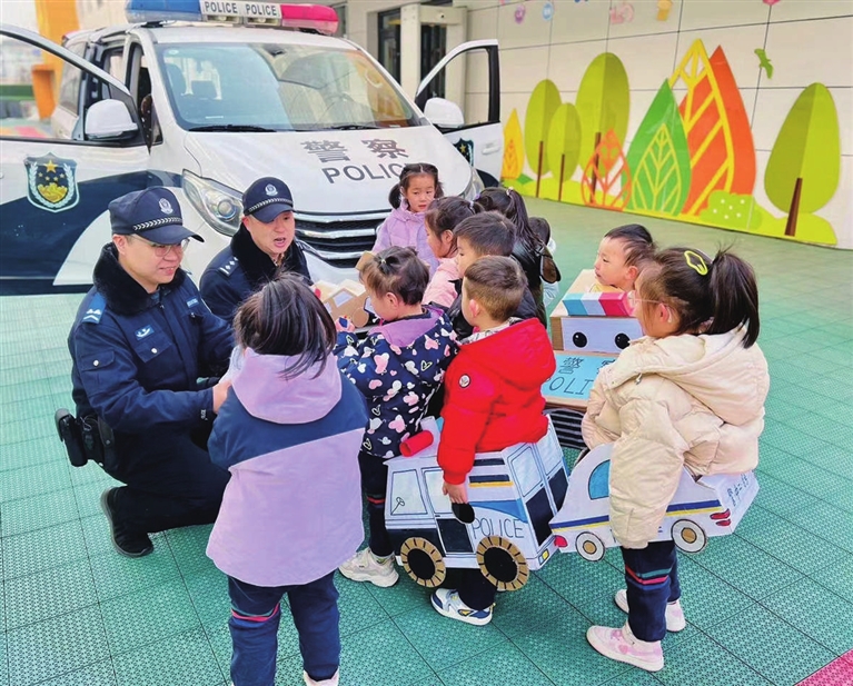 1月24日,文庙派出所在辖区幼儿园开展“警心连童心”活动。活动中,小朋友们饶有兴致地提问发言,近距离观看、体验民警带来的各种警用装备。