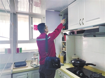 挨家挨户地敲门,一次次地将燃气检漏仪的探头对准管道阀门,虽然每天都熟练地重复着同样的工作,但张乐不敢有丝毫马虎。