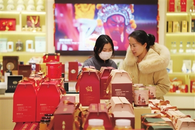 2月6日,“大美小店 龙城年货”2024小店区年货推介活动在山西特产中心举行。图为工作人员正在向顾客介绍小店牺汤。张昊宇 杜亚亚 摄