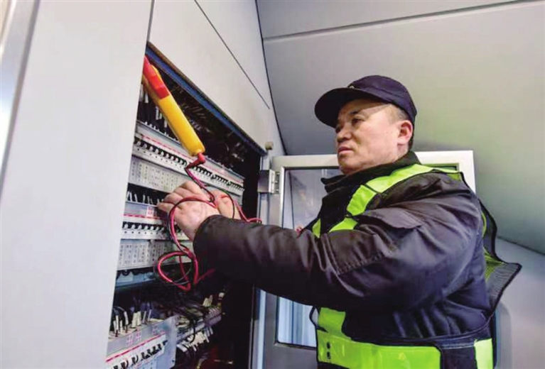 “周师傅,车在太原南站12站台,过来检查一遍吧。”周文刚接到调度反馈,赶忙跑到旁边的站台处理故障。他用设备对列车进行了检查,然后脱下棉大衣,摘下手套,仅穿着一件单薄的工作服,从1米多高的驾驶室跳下,钻到车底。周文刚说:“这个需要钻车底下去看里面的状态,里面的空间很狭小,穿上大衣进不去,还得把手套摘了才能摸到里面的部件是否松动。”