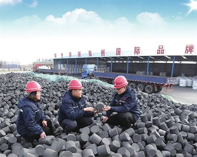 “你看这方方正正的一块型煤,它在硬度、热值上的表现远超国际最高标准。”在山西晋武能源有限公司的生产车间,企业负责人乔会武指着码放整齐的一排型煤说。
