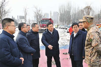 在滨河西路长风桥西南匝道处,韦韬听取全市除雪除冰力量配备及投入情况,现场察看清雪机械作业,要求城管、交通、气象等部门强化协调联动,密切关注天气变化,加强交通路况巡查,科学统筹调度,及时总结经验,优化应对措施,广泛发动各方力量,在清理好城市主干道的基础上,全面做好次干道、背街小巷及公共场所除雪除冰工作,密切监控、及时清除体育场馆等大跨度建筑、农业设施大棚、畜禽圈舍、临时搭建物、老旧建筑及危房等顶部积雪,严防恶劣天气引发安全事故。
