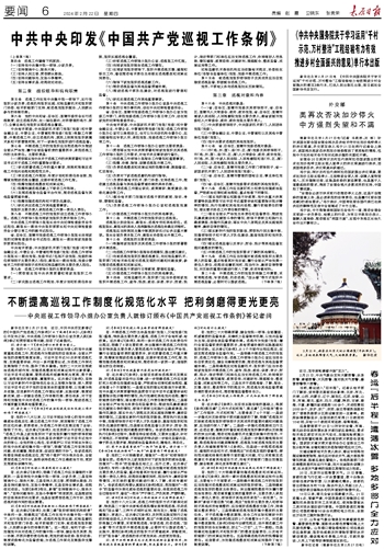 ~~~——中央巡视工作领导小组办公室负责人就修订颁布《中国共产党巡视工作条例》答记者问