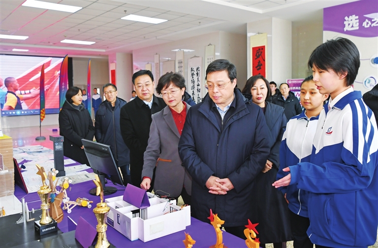 省委常委、市委书记韦韬在太原市第三十七中学校东山校区调研。梁 琛 摄