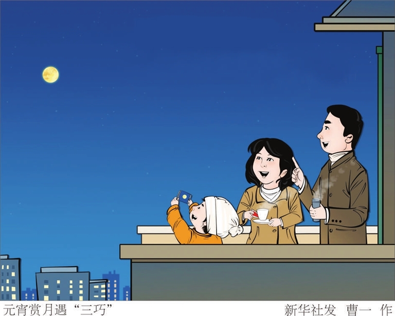 满月可能出现在农历月的十四、十五、十六甚至十七,落在正月十五元宵节当天,实为一巧。一个公历年的12次或13次满月,还有远近之别。今年元宵节当天的月球正好位于远地点附近,而且是最接近远地点的一次,因此这个满月也是年度最小满月,较为少见,是巧上加巧。