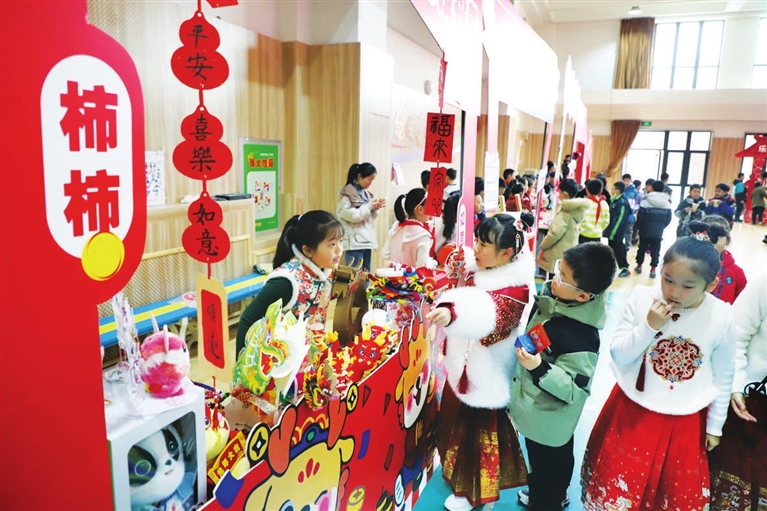 2月26日,小店区光明小学举行新春庙会开学典礼。现场以庙会的形式让同学们体验民俗,感受中华优秀传统文化。张昊宇 摄
