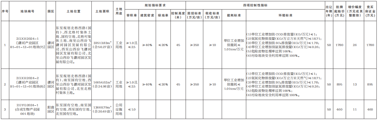山西转型综合改革示范区国有建设用地使用权公开挂牌出让情况表
