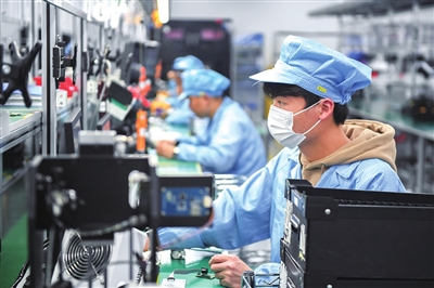 图为2月28日,在高德红外智感科技民品生产线上,工作人员对红外热成像仪进行程序烧录。新华社记者 杜子璇 摄