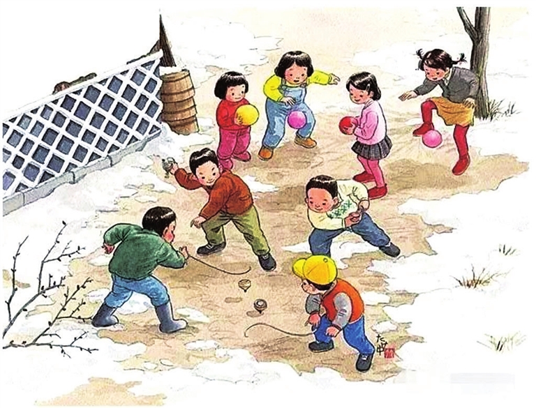 在宽阔的晋阳湖冰面上,孩子们打扳球时的互动也多了起来。有些孩子一鞭甩过去,旋转的扳球会一直向前冲去,准准地撞在另一个孩子的扳球上,而两只扳球仍旋转不停。如果有一大群孩子同时在冰面上打扳球,即便是寒风飕飕,奔走挥鞭的孩子们也是一个个汗水津津。那热腾腾的场面,会让玩耍者和旁观者都忘记了寒冷和所有的不快。