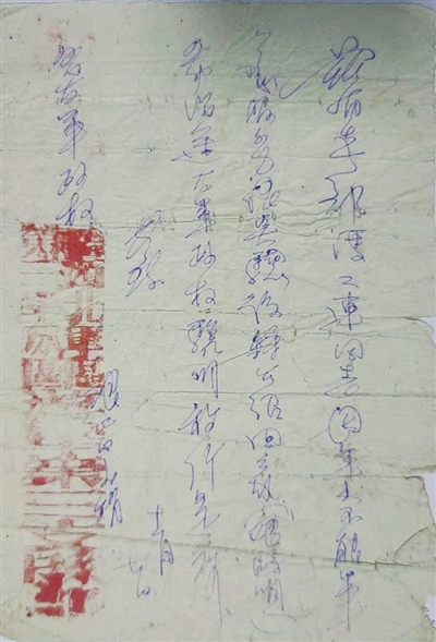 兹有我部冯二连同志因年小不能军队服务,经点验后介绍还乡(银洞)希沿途友军政权验明放行是荷。此致