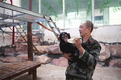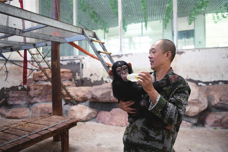 3月3日是第11个“世界野生动植物日”。当日,太原动物园员工在给小猩猩喂奶。牛利敏 摄
