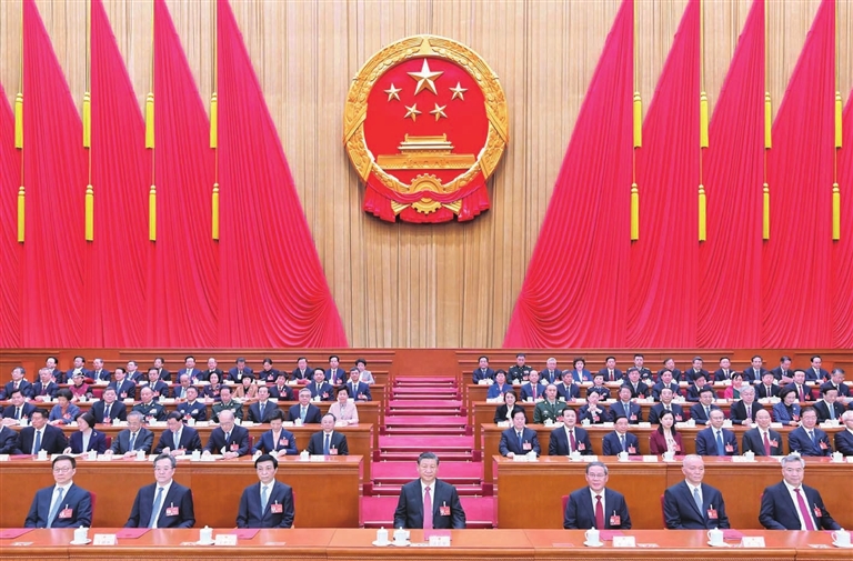 赵乐际指出,大会期间,代表们肩负党和人民重托,以饱满的政治热情和昂扬的精神状态依法履职尽责,认真审议各项报告和议案,会议成果充分体现了党的主张和人民意志的统一,彰显了全过程人民民主和国家根本政治制度的显著优势。