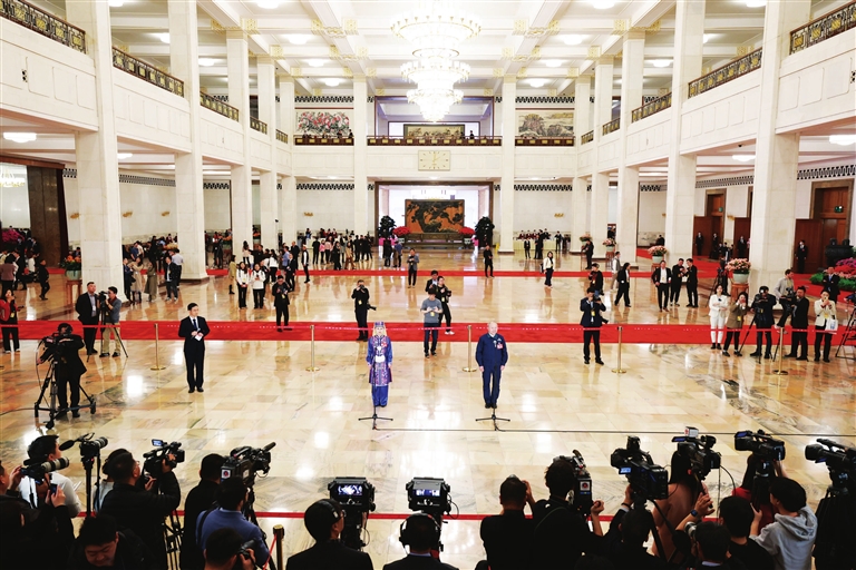这是密集的信息发布,也是开放的交流互动:8天时间,24位部门主要负责人在“部长通道”、记者会上对外发声,18位代表、27位委员走上“代表通道”或“委员通道”讲述履职故事,34个人大代表团举行“开放团组”活动,27个政协界别委员小组会议向境内外媒体记者开放……