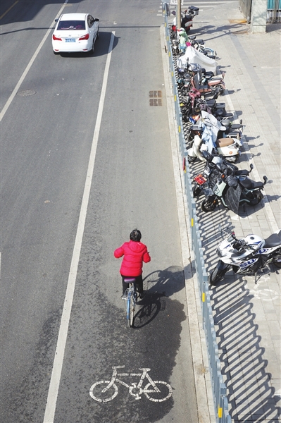 3月11日,羊市街上,机动车、自行车遵守交通规则,各行其道。市民自觉将非机动车在规定区域内整齐停放。张澍宏 摄
