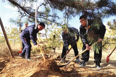 3月11日,市国土绿化中心、迎泽区委宣传部、迎泽区委统战部、老军营街道党工委在阳曲县北山植树基地开展“我为党旗增光彩,共建锦绣太原城”义务植树志愿服务活动。张昊宇 岳 青 摄