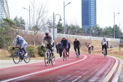 3月17日,许多市民在汾河景区骑行观景,感受和煦春风。张澍宏 摄