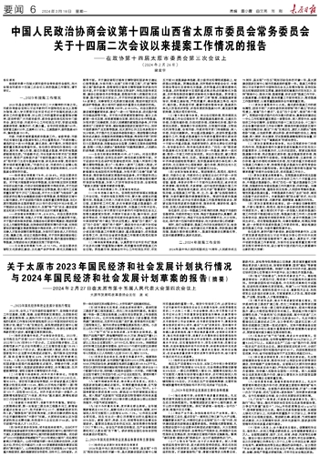 (四)协同发展步伐加快,城市能级持续提升。出台《关于贯彻落实省委省政府支持太原市建设国家区域中心城市的行动方案》,太原建设国家区域中心城市的路线图更加明确。成功获评“2023中国最具幸福感城市”“2023年度活力城市”,知名度和影响力不断提升。山西中部城市群一体化发展步伐加快,太原至太谷、忻州公交开通运行,5类100项高频政务服务事项实现群内“跨市通办”。山西转型综改示范区引进落地24个标志性重大转型项目,晶科能源项目当年签约、当年开工、当年封顶。太忻一体化经济区科创驱动中心、太忻双碳产业园建成投运。