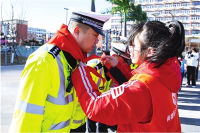 长期以来,六中队民警紧密结合上级领导的要求和辖区实际情况,对辖区实验小学周边易拥堵路段进行反复调研,广泛征求意见建议后设立护学岗。民警在学校门口开启高峰时段的“护学”模式,有序疏导接送学生车辆、社会车辆有序停放、即停即走,护送引领同学们过马路,保障校园周边道路交通有序畅通。此外,民警还经常走进校园为广大师生上交通安全课,从而使学生们树立起良好的交通安全意识和防范能力。交警的默默付出,被广大师生看在眼里、记在心里,同学们向警察叔叔们献上了鲜花和自制的祝福卡片,并为每一名辛勤付出的交警佩戴上了鲜艳的红领巾。