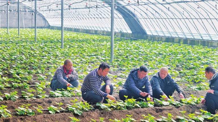 3月18日,晋源区三家村升级改造后的温室大棚,种植户查看黄瓜幼苗长势。时值春耕备耕之际,我市各县区抢抓农时,辛勤劳作的身影随处可见。王 昕 摄
