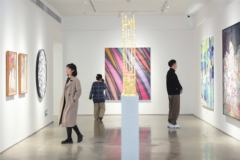 3月19日,“对话:北京画廊协会美术馆巡展”在山西省当代美术馆开展,来自北京17家画廊的83幅作品参展。王韵菲 摄