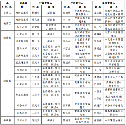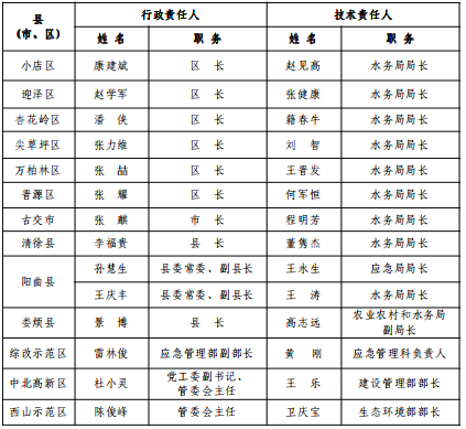 二〇二四年太原市各县(市、区)防汛抗旱责任人名单