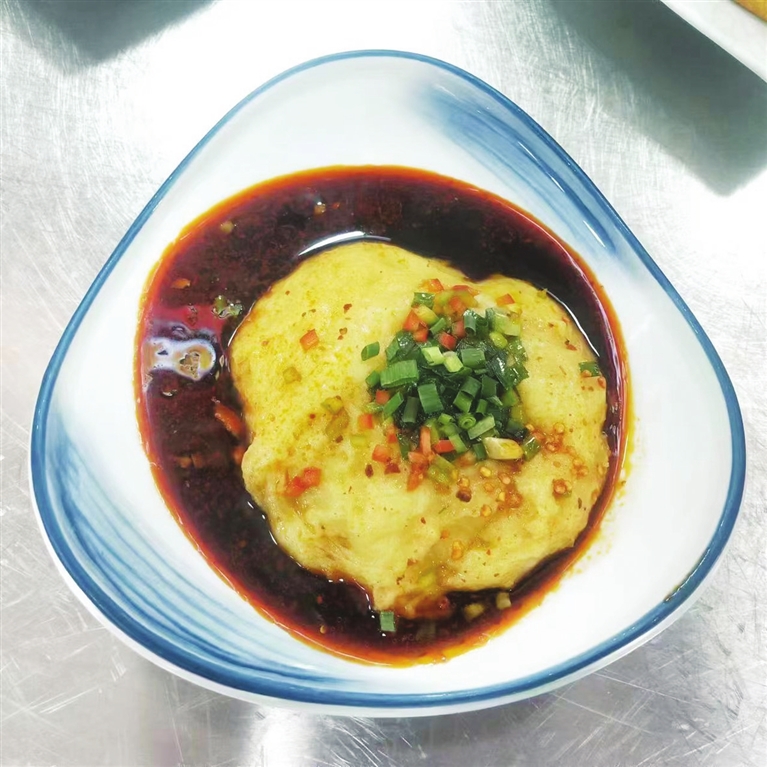 捣得好的馕糕,在骨碌子上带起小孩拳头大、像肉一样的一个小团,白细柔嫩,光亮稴利(即不沾盆子)。蘸汤以娄烦妇女做的老陈醋为主,可根据口味配入佐料,吃起来凉凉的、稴稴的、酸酸的、辣辣的,别有一番风味。
