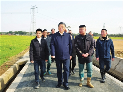 湖南是全国13个粮食主产省之一,水稻播种面积、总产量均居全国第一。当天下午,习近平来到常德市鼎城区谢家铺镇港中坪村,走进当地粮食生产万亩综合示范片区,察看秧苗培育和春耕备耕进展,听取高质量推进农业现代化情况介绍,并同种粮大户、农技人员、基层干部一笔一笔算投入产出账。习近平强调,我国有14亿多人口,粮食安全必须靠我们自己保证,中国人的饭碗应该主要装中国粮。要建设好高标准农田,推行适度规模经营,加强政策支持和示范引领,加大良种、良机、良法推广力度,在精耕细作上下功夫,进一步把粮食单产和品质提上去,让种粮也能够致富,进而吸引更多农户参与发展现代化大农业,真正把中国特色农业现代化之路走稳走扎实。