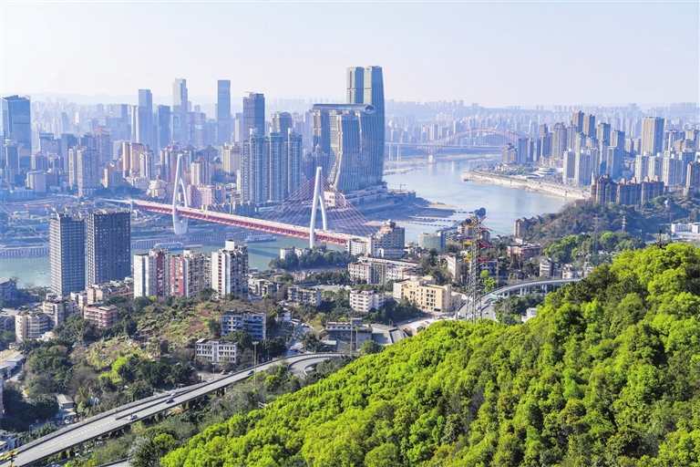 春日里,长江、嘉陵江交汇的山水之城重庆呈现出一片生机勃勃、欣欣向荣的景象。近年来,重庆以“两江四岸”治理提升工作为抓手,调整码头、工厂、市场等功能布局,恢复沿江岸线生态廊道功能,推动城市有机更新,努力实现人城山水和谐共生。新华社记者 王全超 摄