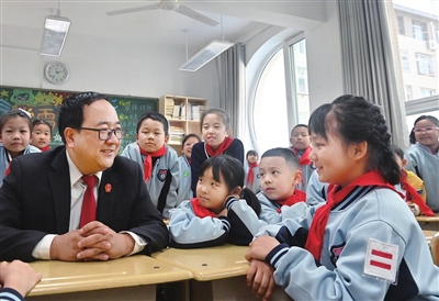 3月28日,迎泽区人民法院庙前法庭工作人员走进桃南小学开展“送法进校园 法治护成长”普法活动,提升学生的法治意识和自我保护意识。王韵菲 摄