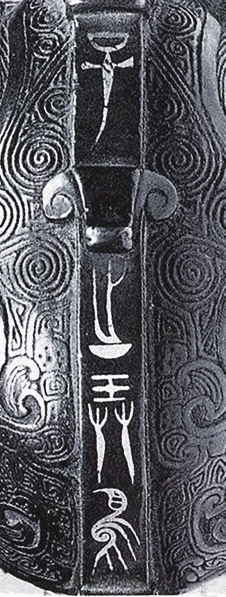 子乍弄鸟尊之名源于鸟尊的后脑有竖排错金四字铭文“子乍弄鸟”。“子”是器物铸造者的名字;“乍”通“作”,制作的意思;“弄”有玩弄、把玩之意。四字串起来,就是“子”这个人制作了这件供自己把玩的鸟尊。