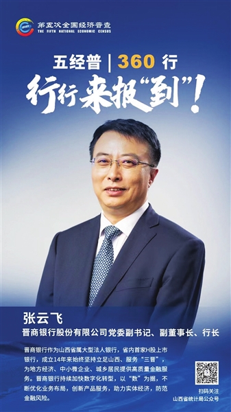 经济普查把脉经济摸家底,普查成果共受益,我们积极配合第五次全国经济普查工作,实事求是提供真实的经济数据,为银行业的高质量发展贡献晋商力量。