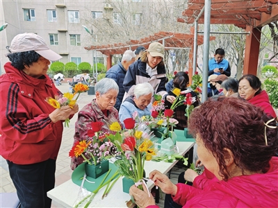 “我第一次学插花就成功了,我要把它带回家慢慢欣赏,留作纪念。”居民王女士笑着说,在活动中,还结识了好几名“花友”,收获很大。