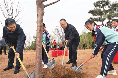 北山生态园位于太原市区北部,经过多年来大规模的植树造林,已成为省城一道绿色屏障。植树活动前,省林草局、太原市介绍了我省国土绿化和生态建设有关情况。唐登杰指出,要深入学习贯彻习近平生态文明思想和习近平总书记在参加首都义务植树活动时的重要讲话精神,牢固树立和践行绿水青山就是金山银山的理念,大力弘扬右玉精神,深入实施黄河流域生态保护和高质量发展战略,协同推进降碳减污扩绿增长,统筹推进山水林田湖草沙一体化保护和系统治理,加快发展方式绿色低碳转型,努力探索北方生态脆弱地区和资源型地区生态文明建设新路径。要坚持扩绿、兴绿、护绿并举,持之以恒开展国土绿化行动,加强林草资源保护,把更多力量集中到“三北”工程建设上来,不断增厚我们的“绿色家底”,持续拓展绿水青山转化为金山银山的路径。要坚持领导干部带头、全社会人人参与,多种树、种好树、管好树,种一棵活一棵、造一片成一片,一茬接着一茬种,一代接着一代干,持续提高国土绿化率,厚植高质量发展生态底色,绘就表里山河绿色新画卷,为美丽中国建设作出山西贡献。