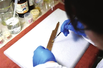 中心主任方北松介绍,简牍保护包括清洗脱色、脱水加固、干燥定型、粘接修复等步骤,中心及其设立在长沙、兰州等地的7个工作站每年能为7000枚竹简进行脱水保护,消化现有存量需要将近6年。