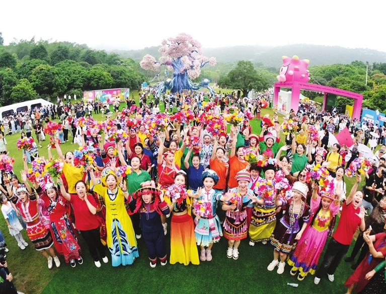 4月11日,演员在广西南宁市青秀山主会场庆祝佳节。4月11日,“广西三月三·八桂嘉年华”主会场活动在广西南宁市青秀山举行,人们欢聚一起,载歌载舞,欢庆“三月三”传统佳节。与此同时,广西各地也举办了形式多样的欢庆活动,庆祝“三月三”。新华社记者 周 华 摄