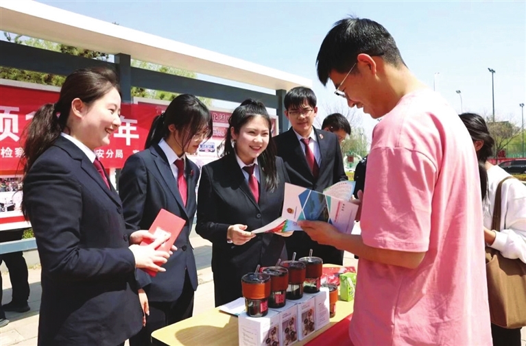 检察干警还引导在校大学生扫码关注该院微信公众号、抖音账号,通过线上了解更多法律知识,进一步提升大学生群体知法懂法守法、遇事找法的法律意识。