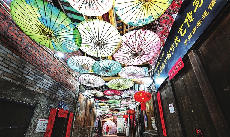 四川省泸州市江阳区将“非遗”油纸伞融入百姓生活,出台政策激励传承人改进制作工艺,产品依托互联网平台畅销国内外市场,带动当地群众增收致富。泸州油纸伞制作技艺是国家级非物质文化遗产,被誉为“中国民间伞艺的活化石”。