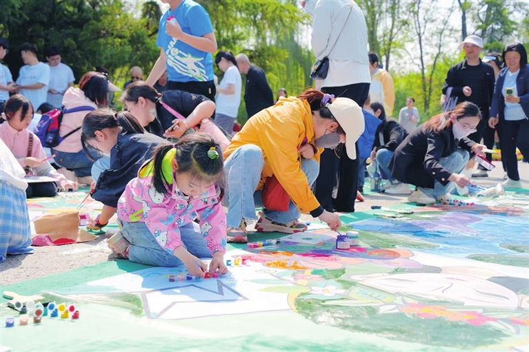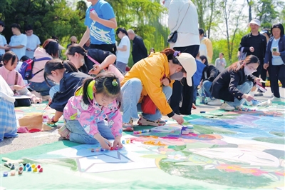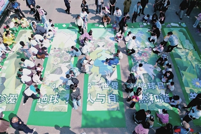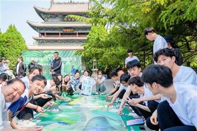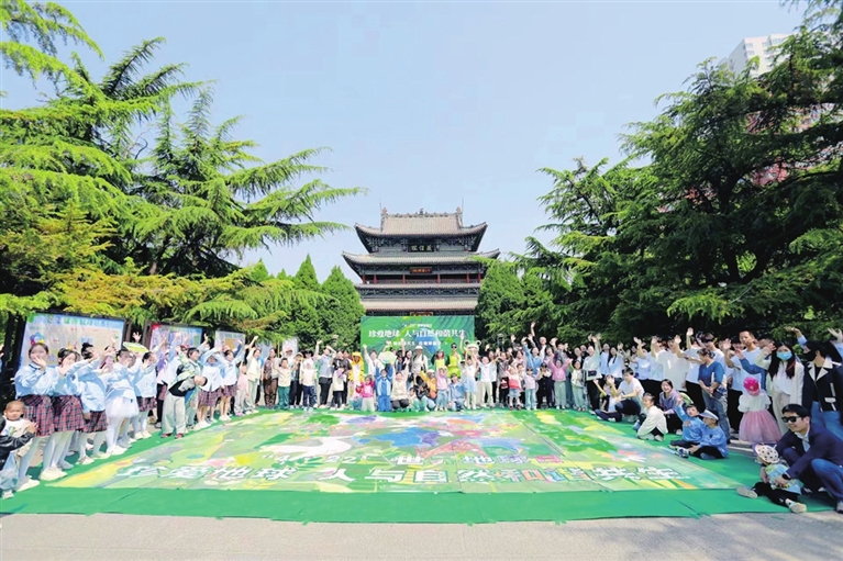 伴随着杏花岭区第六中学学子们优美动人的舞蹈《相依相生、天之大美》,当天的宣传活动拉开了序幕。山西能源学院的同学们齐声高唱《我们属于大自然》,现场的气氛瞬间被点燃。“百人共绘地球画卷”更是吸引了广大市民驻足参与,由环保小卫士家庭、高校社团、杏花岭区第六中学及现场市民组成的300余人的创意彩绘团,一起或点墨挥毫、或填色涂画,用细腻的线条、鲜艳的色彩和独特的创意,共同呈现出一幅巨型画作。